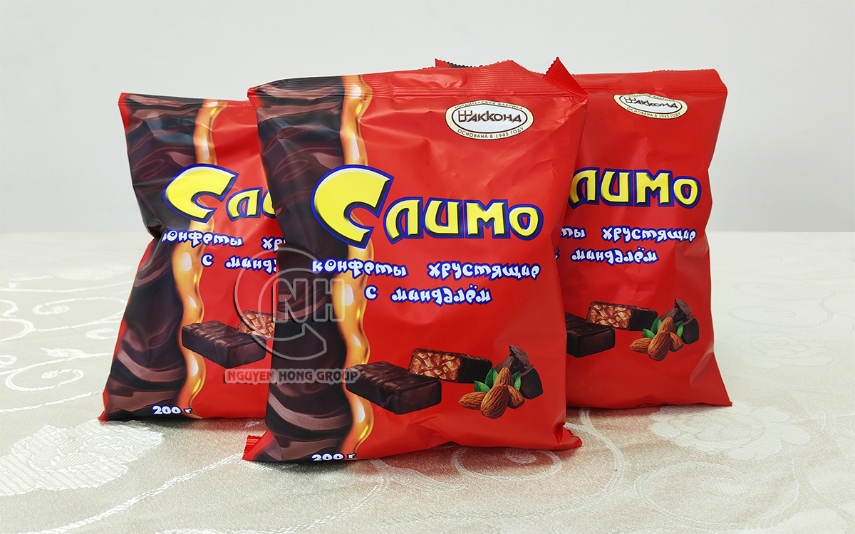 Kẹo giòn SLIMO nhân hạnh nhân do AKKOND – thương hiệu bánh kẹo có lịch sử hơn 80 năm – sản xuất. Sản phẩm có lớp socola sữa mịn bao phủ bên ngoài, bên trong là caramel giòn kết hợp hạnh nhân nghiền nhỏ, tạo nên vị ngọt đậm đà, béo nhẹ và giòn tan hấp dẫn. Kẹo giòn SLIMO nhân hạnh nhân thích hợp để thưởng trà, làm món tráng miệng hoặc làm món quà ngọt ngào dành tặng người thân, bạn bè. Sản phẩm do Công ty TNHH Nguyễn Hồng nhập khẩu chính ngạch và phân phối tại thị trường Việt Nam.