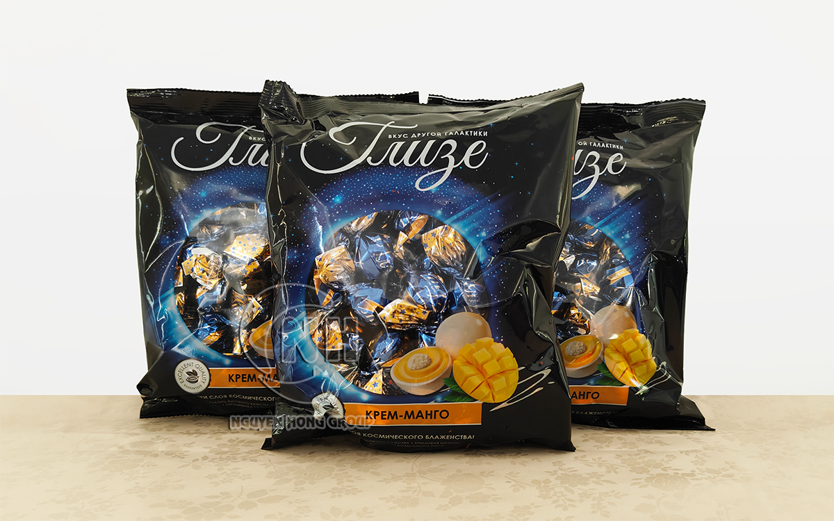 Kẹo nhân kem hương xoài Konfesta là sản phẩm của Konfesta – thương hiệu bánh kẹo nổi tiếng đến từ Nga. Kẹo có dạng viên tròn, bên ngoài phủ lớp socola trắng, bên trong là nhân kem xoài mềm mịn, ngọt dịu xen chút chua thanh, phù hợp với khẩu vị nhiều người.