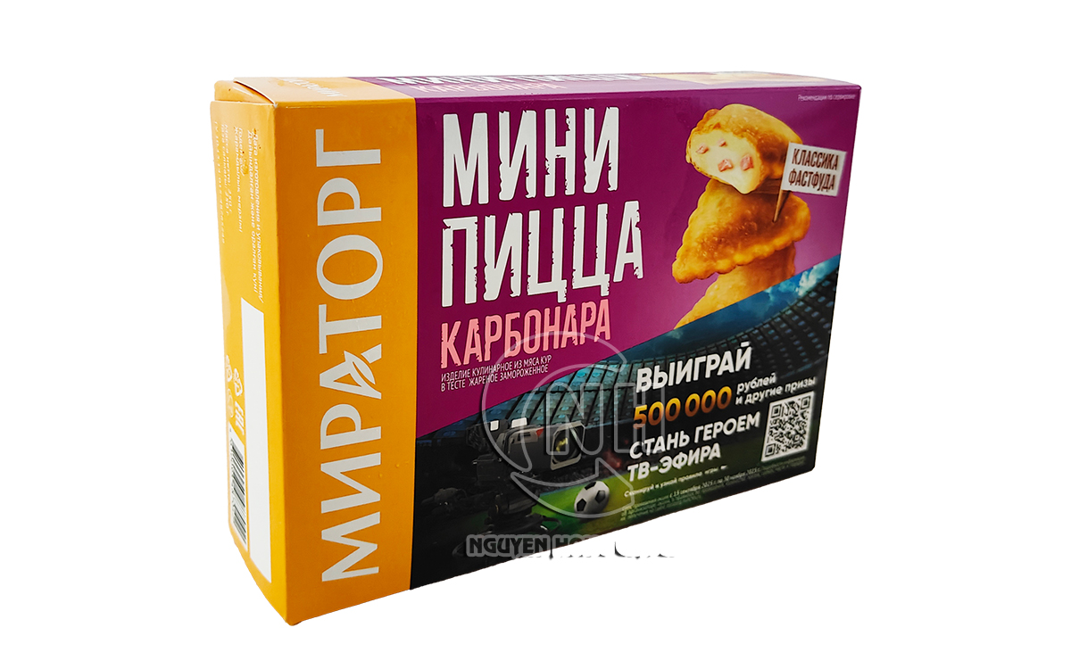 Bánh pizza mini nhân carbonara Miratorg do Công ty TNHH Nguyễn Hồng nhập khẩu chính ngạch và phân phối tại thị trường Việt Nam.