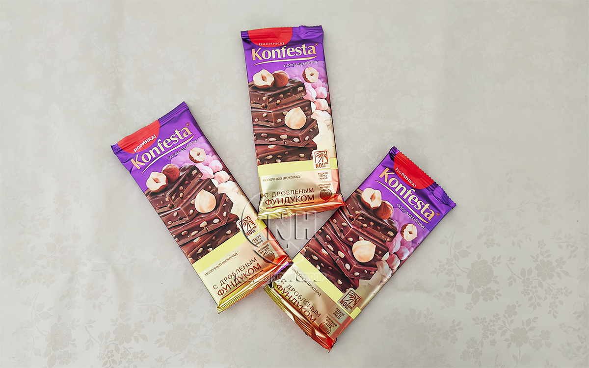 Socola sữa với hạt phỉ Konfesta là sản phẩm của Konfesta – thương hiệu bánh kẹo nổi tiếng đến từ Nga. Sản phẩm kết hợp giữa socola sữa và hạt phỉ rang nghiền, mang đến vị ngọt hài hòa, béo nhẹ của sữa cùng vị bùi thơm đặc trưng của hạt phỉ, dễ ăn và hấp dẫn.